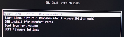 Om Linux Mint op te starten moet je de USB-stick selecteren in het bootmenu van UEFI of, als het om een oudere computer gaat, de BIOS. Het bootmenu open je door tijdens het opstarten van de computer veelvuldig een toets of toetsencombinatie in te drukken tot er een melding of het menu zelf verschijnt.